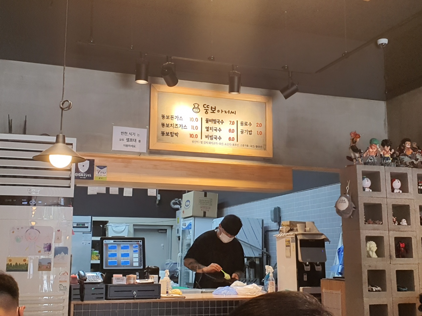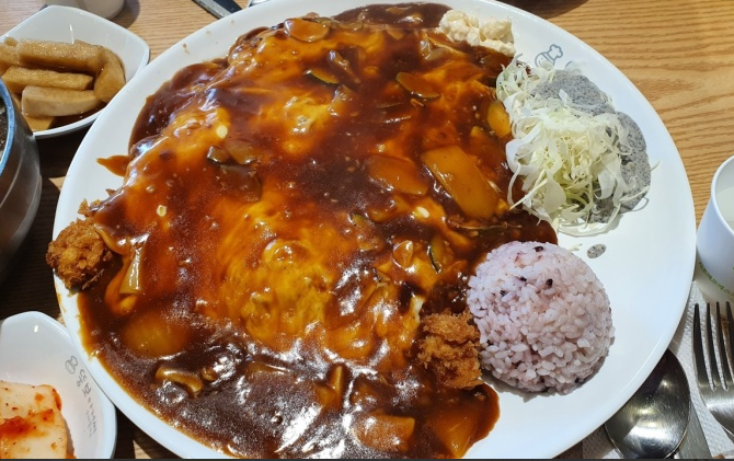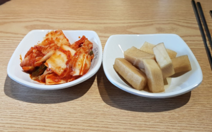 셀프 바가 있어서 식기, 반찬 등을 가져가 먹어야 해요.